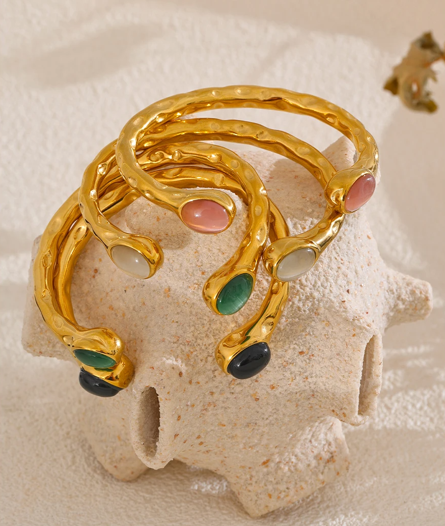 O Bracelete de Aço Inoxidável com Pedra Natural Colorida é a escolha perfeita para mulheres que buscam elegância, estilo e exclusividade em cada detalhe. Seu design geométrico e moderno é enriquecido com pedras naturais multicoloridas, que adicionam um toque vibrante e sofisticado ao visual.