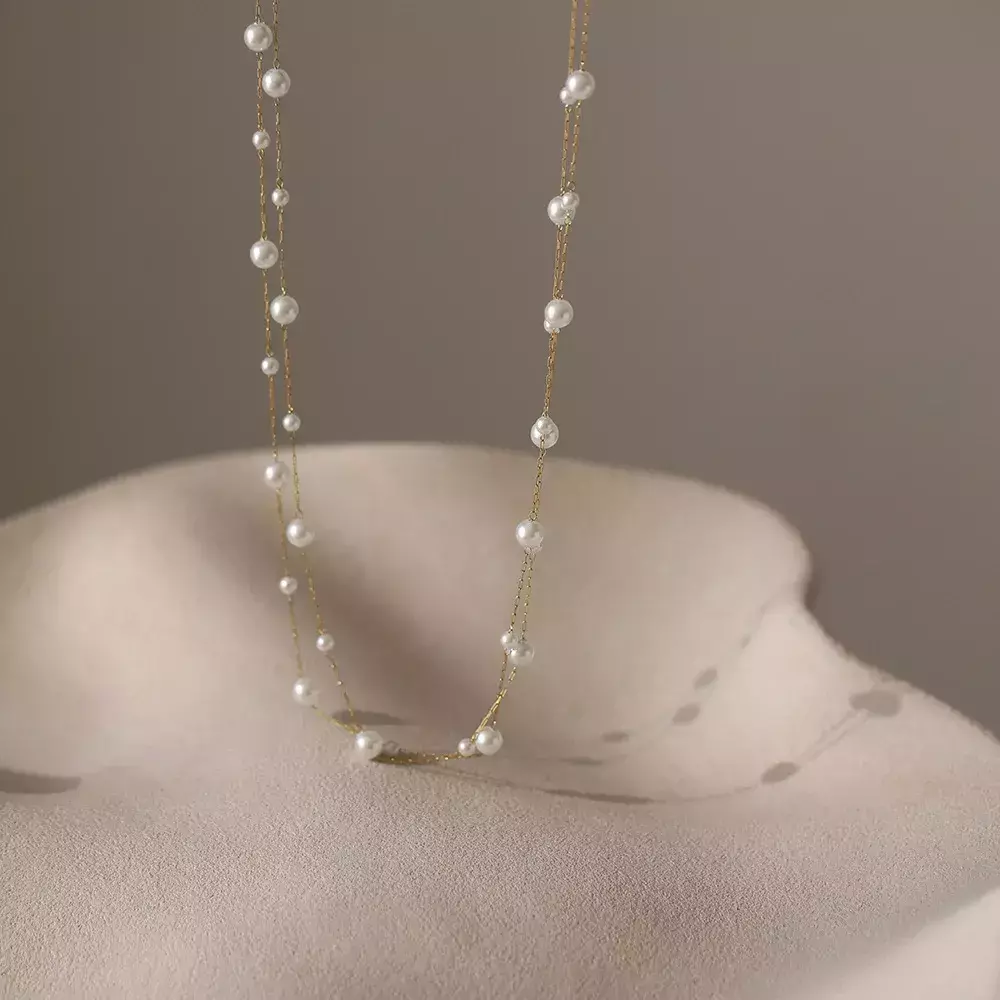 Adicione o Colar Duplo de Pérola com Corrente de Aço Inoxidável ao seu carrinho hoje e eleve seu estilo com a sofisticação das pérolas e a resistência do aço inoxidável.