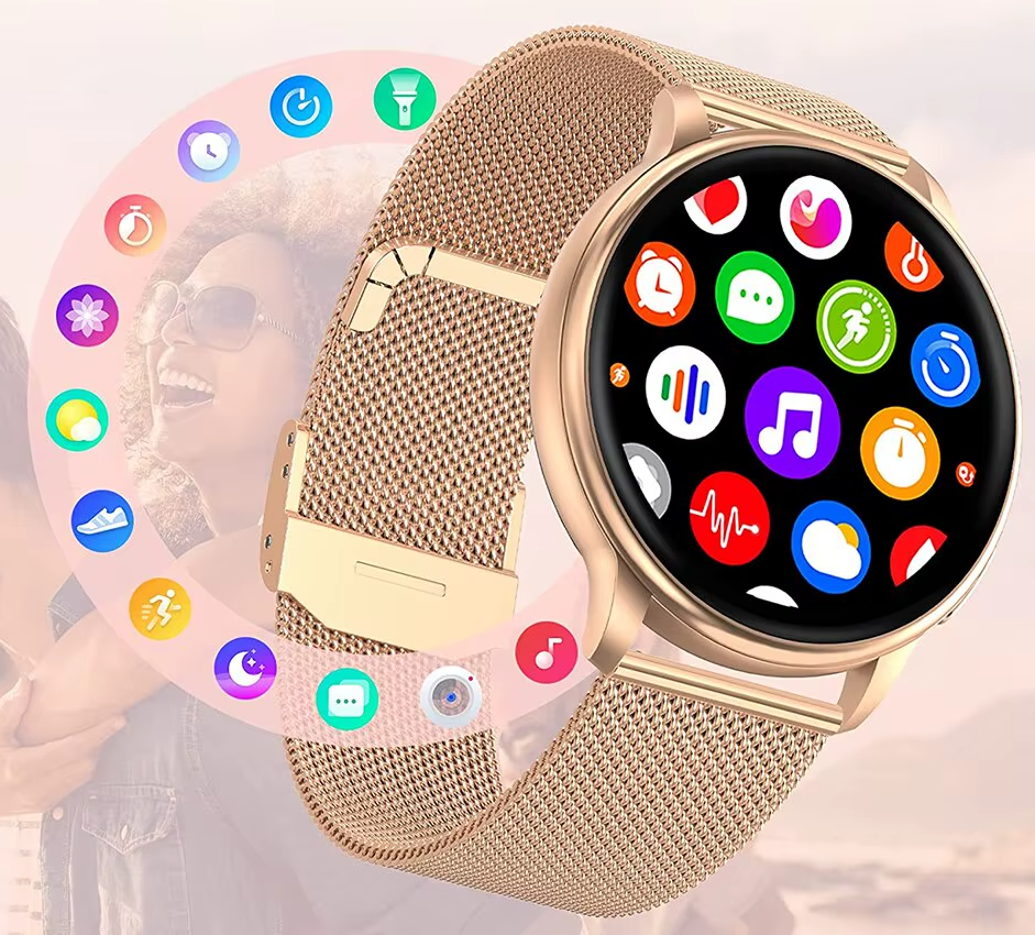 Este relógio inteligente é perfeito para mulheres que desejam conveniência, beleza e tecnologia em um único acessório. Seja para cuidar da saúde, acompanhar seus treinos ou se manter conectada com estilo, ele é a escolha ideal.